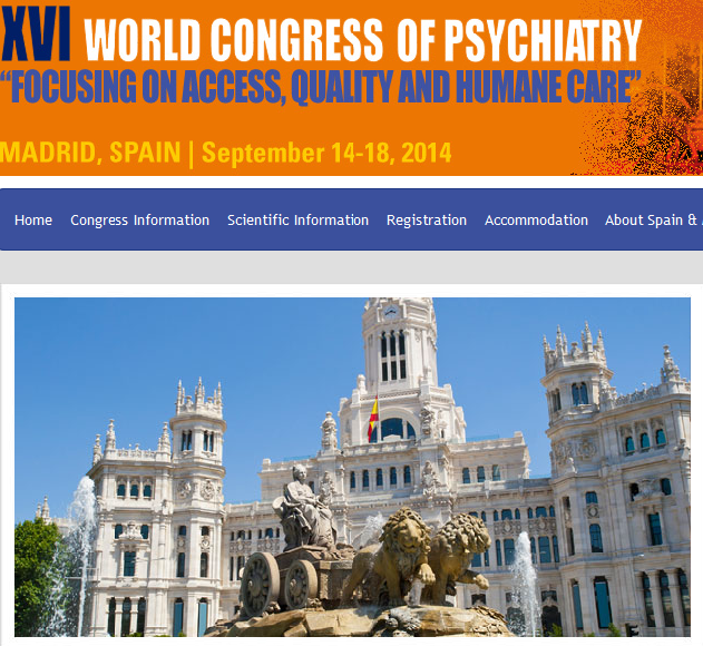 Международный конгресс по психиатрии World Congress of Psychiatry 2014 проводится с 14 по 18 сентября 2014 года в Мадриде, Испания